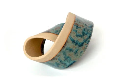 Phlex is an ongoing series of stoneware ceramic sculptures. These intertwining, curvaceous structures have been developed to present a particular kind of visual interplay which unconsciously prompts the viewer to continually move around the pieces. This instinctive changing of visual perspective – following the curves as one parabola resolves into another – works to imbue the objects with a sense of motion and energy that belies their rigid materiality, and enhances their perceptual aesthetic. As viewers engage with these works, they are unwittingly revealing the overlooked role that embodiment plays in enabling perception and the neurologically ‘constructive’ nature of vision itself.